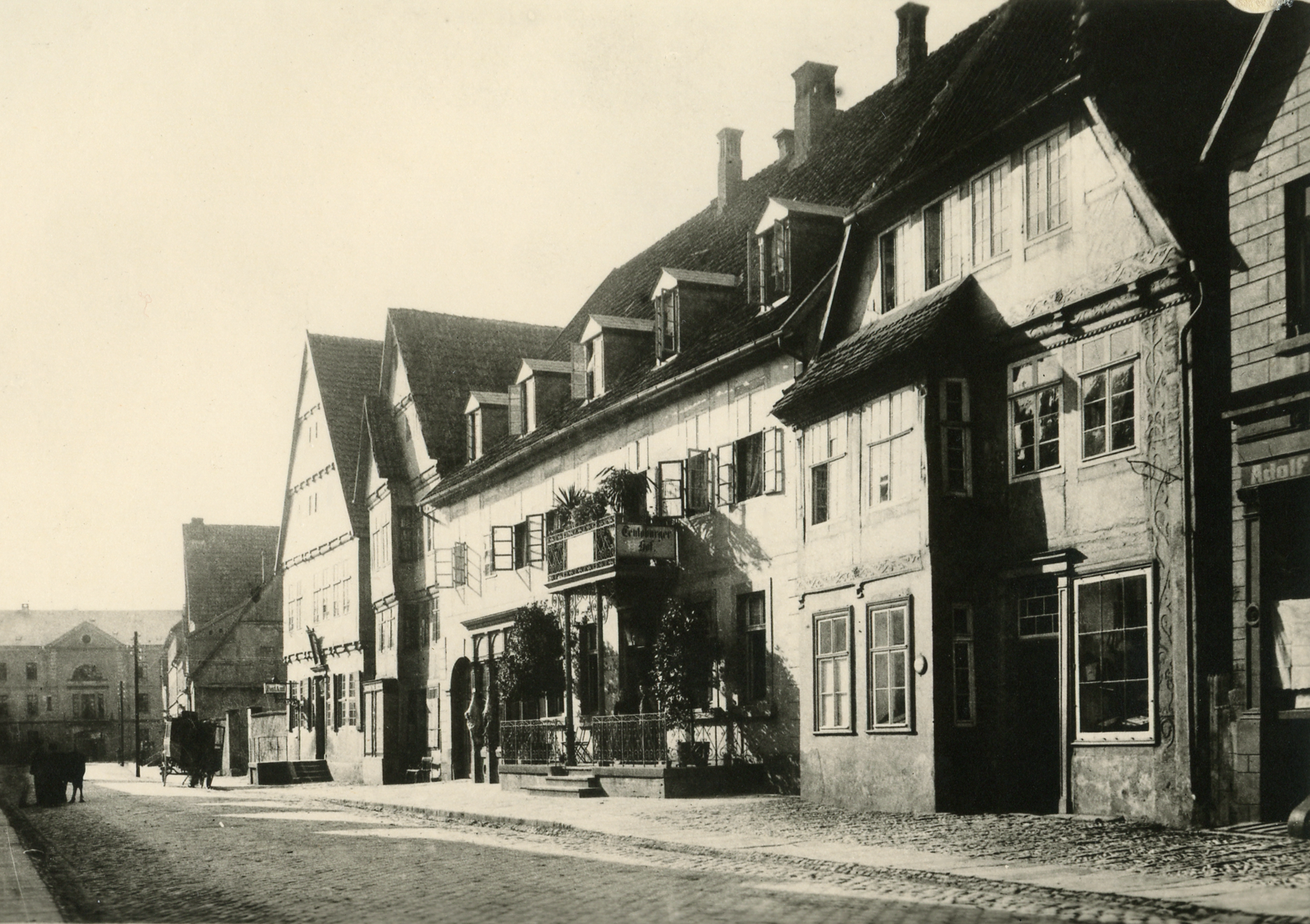 Südseite der Exterstraße, vor 1880, rechts Nr. 7 "Hotel Teutoburger Hof", links im Hintergrund die Kaserne an der Leopoldstraße, LLB: BA DT-9-11