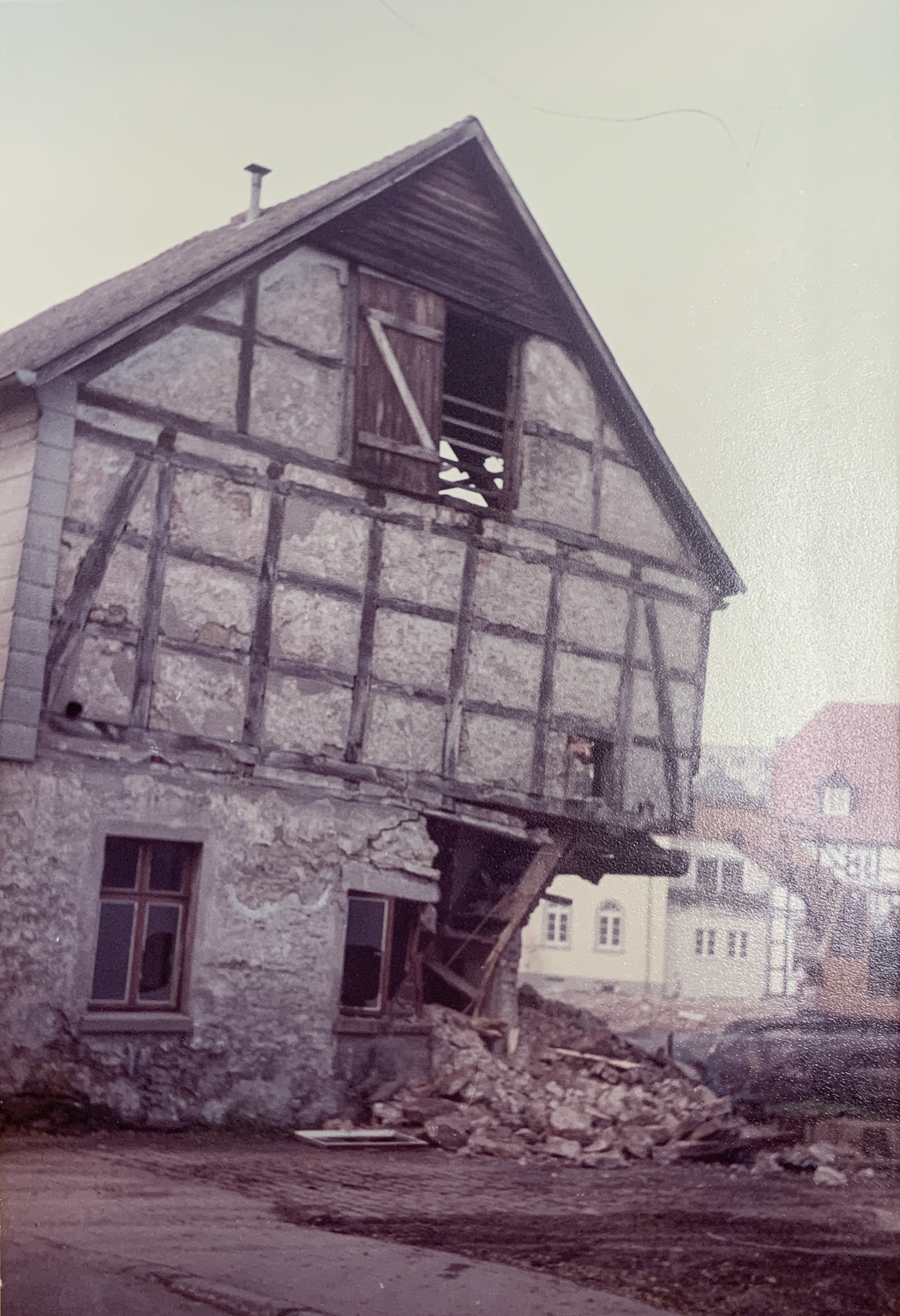 Alter Postweg 4, Ansicht von Süden, während des Abbruchs, Oktober 1984, Foto: E. Wittenstein