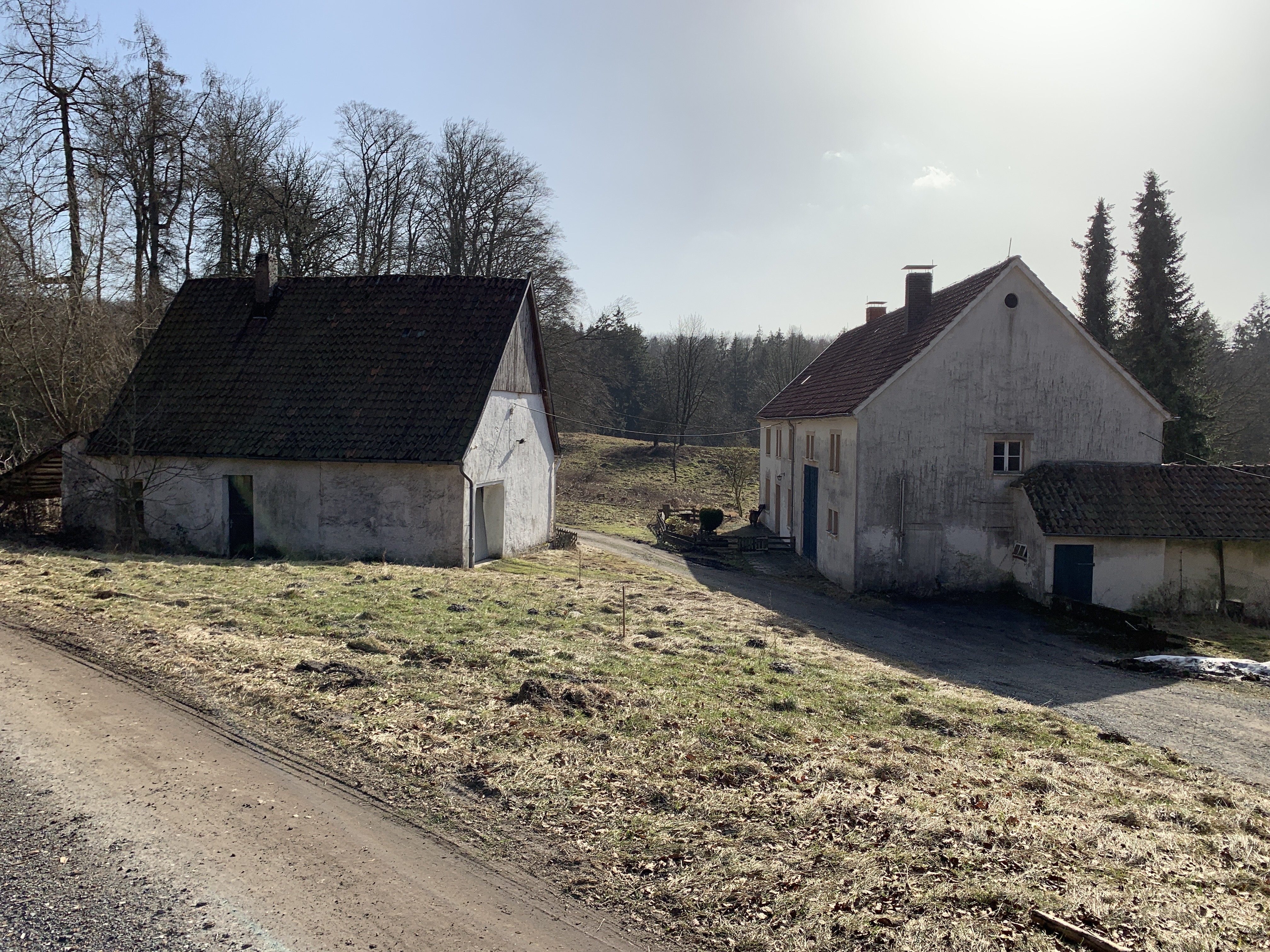 Forsthaus Nassesand (rechts) mit Backhausanbau, Waldarbeiterhaus (links), 2021, Foto: Joachim Kleinmanns