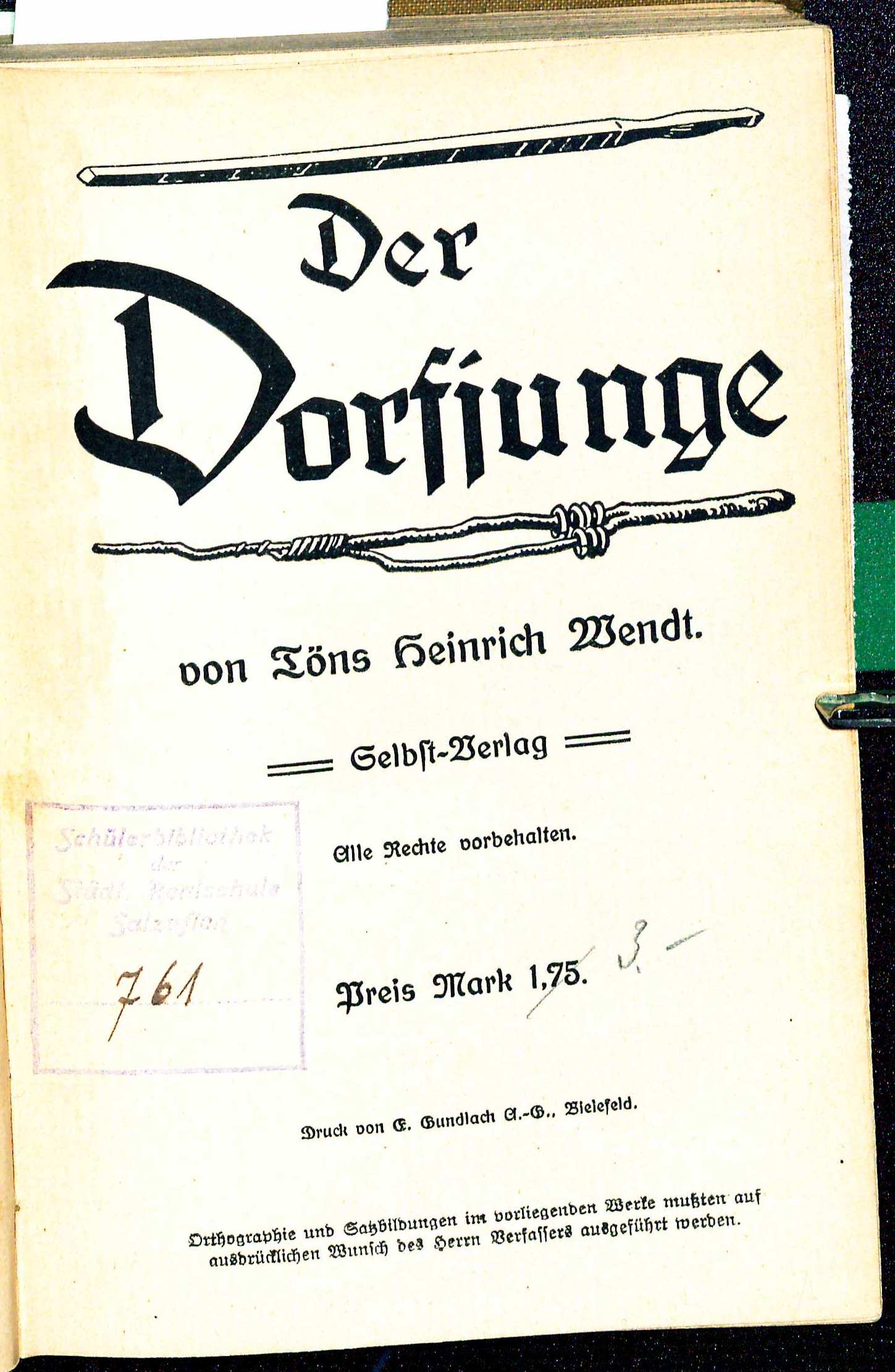 Töns Heinrich Wendt, Der Dorfjunge: Titelblatt