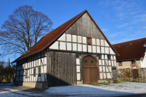 Fachwerkhaus von 1857, heute als Scheune genutzt.