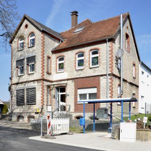 Zweigeschossiger Mauerwerksbau aus Muschelkalk, Gebäudeecken, Stockwerk- und Kranzgesims sowie Fenster- und Türgewände aus Backstein. Traufständig zur Straße, westlich 2 ½-geschossiger giebelständiger Risalit, gut 1 m vorspringend, mit seitlichen Fenstern in Tradition einer Utlucht. Der Risalit mit zwei Fensterachsen, die im 2. Obergeschoss rundbogig. Die übrigen Fenster, auch Kellerfenster und Haustür, mit Stichbögen. Der östliche Gebäudeteil mit drei Fensterachsen, in der linken die Haustür mit Freitreppe. Die Fensteröffnung daneben modern verändert (liegendes Rechteckfenster) und die dadurch entstandenen Mauerwerksstörungen mit roten Klinkern verblendet. In allen Giebelspitzen Rundfenster. Die Westfassade verputzt, im Putz historische Inschriftflächen, auch über der Haustür in der Südfassade. Im Giebeldreieck der Ostseite Ladeluke. Westlich und rückwärtig moderne Anbauten. Deckung mit roten Muldenfalzziegel, auf dem Risalit durch schwarze Pfannen erneuert.
