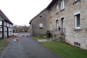 Das Gebäude ist zweigeschossig aus Bruchsteinmauerwerkerbaut mit Satteldach in Ost-West-Ausrichtung. Das Deelentor an der Ostseite hat als Torbogen ein schmuckloses, aus Sandstein gefertigtes Gewände ohne Jahreszahlangabe und Inschriften. Der Hauseingang zum Wohnbereich liegt an der Nordseite und wird mit vier Stufen erreicht. Eingeschossige Anbauten an der Ostseite und ein kleines, inzwischen abgebrochenes Nebengebäude rundeten die bis ca. 1995 landwirtschaftlich genutzte Hofstelle ab.