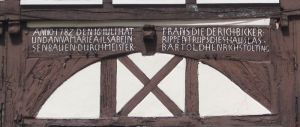 ANNO • 1782 DEN•16•JULI HAT FRANS DIEDERICH BICKER UND ANNA MARIEA ILSABEIN RIPPENTRUPS DIES HAUS LAS SEN BAUEN DURCH MEISTER BARTOLD HENRICH STOLTING