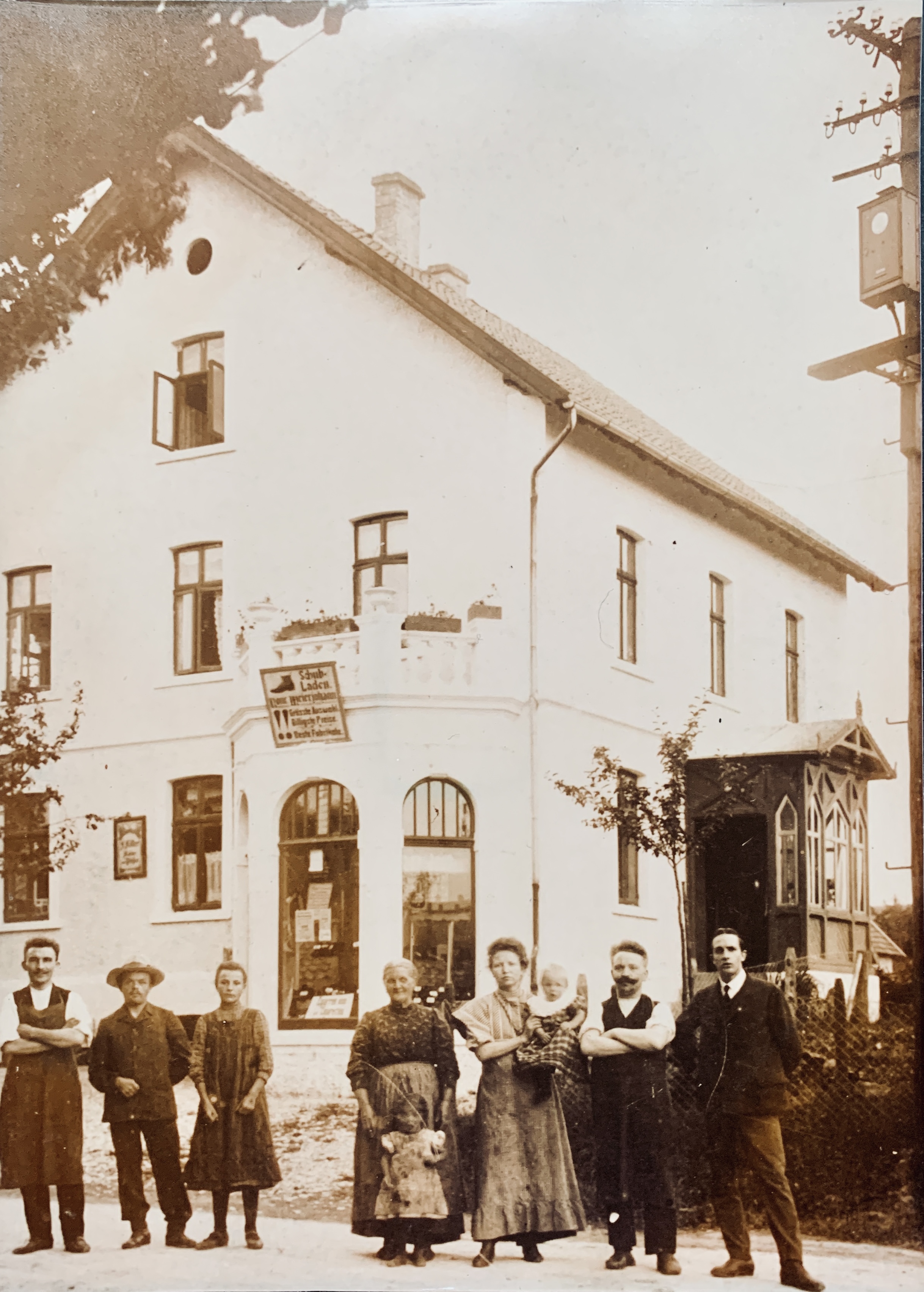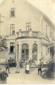 | 09:10, 27. Jun. 2023 | DT-Hk Denkmalstr14 1912priv.jpg (Datei) | 1,69 MB | Joachim Kleinmanns | Ansicht mit dem ursprünglichen Windfang und der Balustrade über dem Schaufenster. Links der Schuhmachergehilfe Wilhelm Brüggemann, zweiter von rechts Konrad Meierjohann, daneben seine Frau Sophie mit dem Sohn Konrad und vermutlich ihre Mutter mit Enkel Rudolf Meierjohann, um 1912 (Foto: privat) | 1 | |