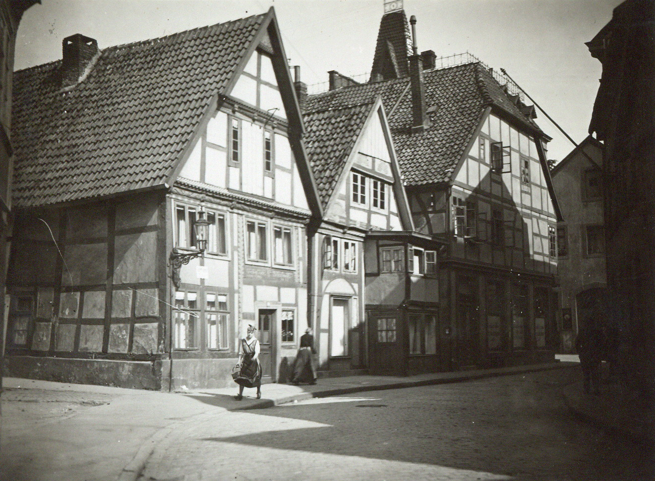 Krumme Straße 58 und 60, rechts Bruchstraße 30, um 1910, Sammlung Pecher, StadtA Detmold, BA 88