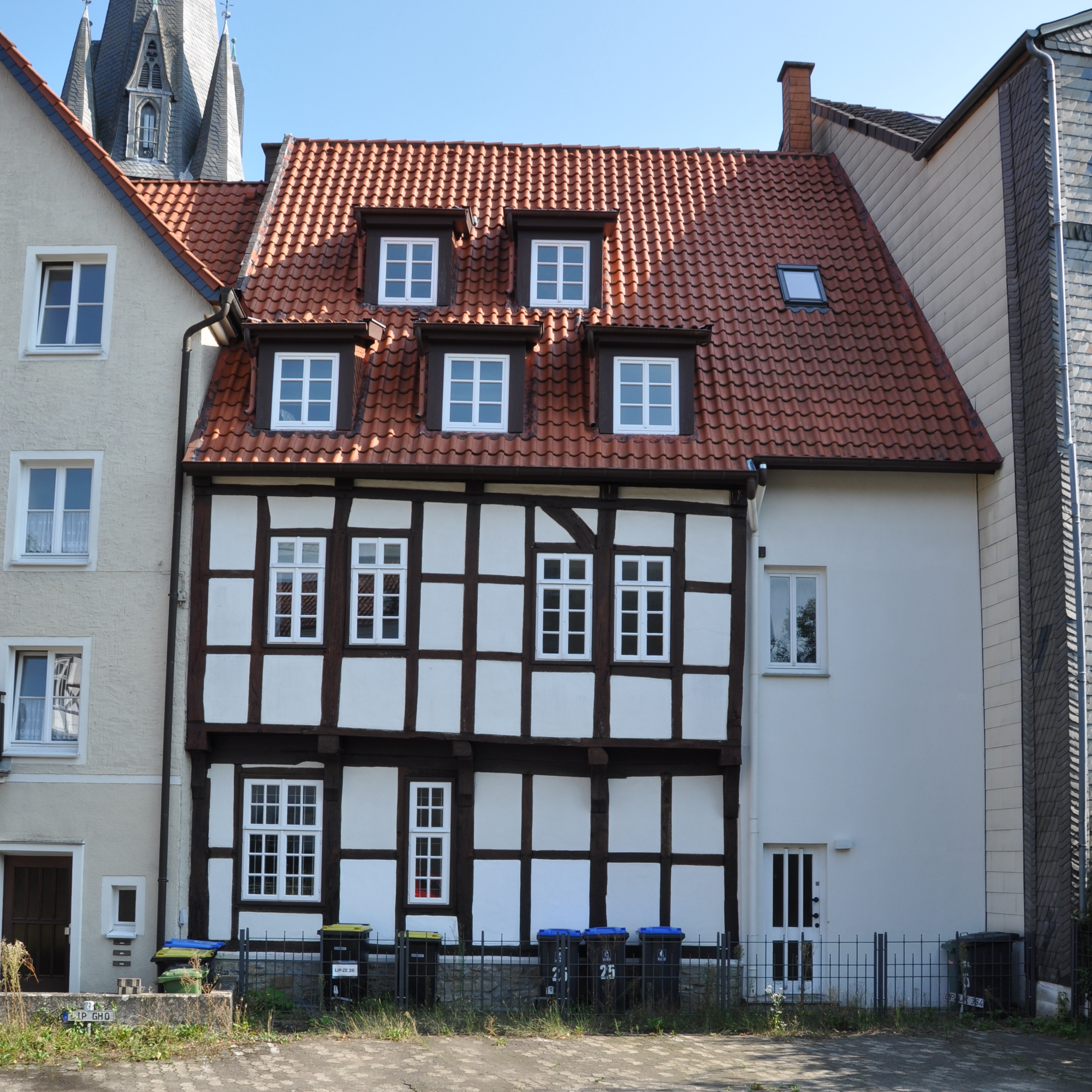 Version vom 2. September 2024, 12:32 Uhr von Joachim Kleinmanns (Diskussion | Beiträge) (Rücktraufe von Schülerstraße 25 mit Fachwerkgefüge von 1506/07 [d], 2024, Foto: Joachim Kleinmanns)