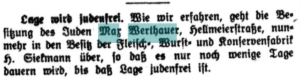 Zeitungsartikel „Lage wird judenfrei“. In: Lippische Staatszeitung vom 15. Oktober 1938.