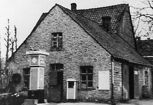 Das Haupthaus, von der Grundfläche kaum größer als die Leibzucht, wechselt mit einem weiteren Backhaus 1901 den Besitzer und wird danach für sieben Jahrzehnte zu Hörstes Schmiede(-Stätte).[12] Bald nach dem Erwerb wird das Wohnhaus durch einen Anbau rechts der Rundbogentür vergrößert, in den 1920er Jahren entsteht auf der linken Seite die Schmiedewerkstatt. Schließlich wird 1938 eine Dienstbarkeit für den Benzol-Verband, Bochum, in das Grundbuch eingetragen betreffend Bau einer Tankanlage mit unterirdischem Tank. Diese Tankstelle vor dem Giebel der Schmiede belegt, dass auch der Service für motorisierte Fahrzeuge durchgeführt wurde.