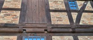 Im Erdgeschoss des Fachwerkbaus befand sich früher ein Backofen, darüber der Speicher.[1] Zuvor verfügte der Hof über ein separates kleines Backhaus.