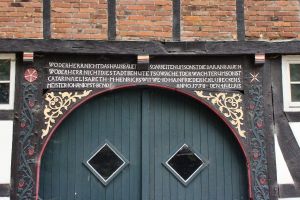 Das Fachwerkhaus wurde nach der vorhandenen Hausinschrift am 4. Juli 1738 von Johann Henrich Lübbeke und Catharina Elisabeth Meier-Henrich erbaut.