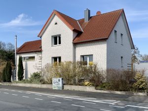 Eingeschossiger traufständiger Mauerwerksbau mit giebelständigem zweigeschossigen Risalit links, Kniestock, Satteldach. Ehemalige Putzfassade mit weißen Klinkern verblendet, ebenso der moderne Anbau links.