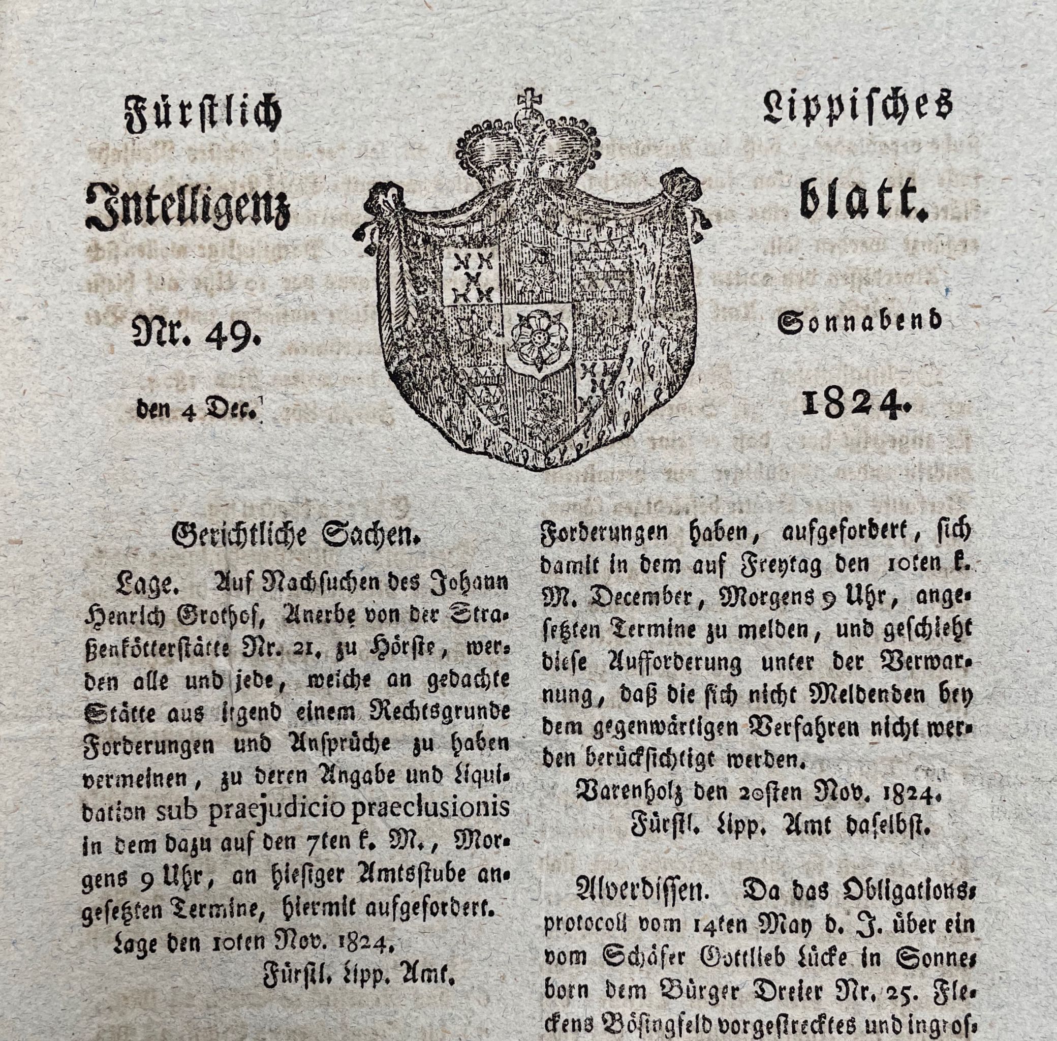 Öffentlicher Aufruf zur Schulden-Ermittlung Grothof (auch von Kanzeln in Stapelage, Lage, Heiden und Detmold verlesen)