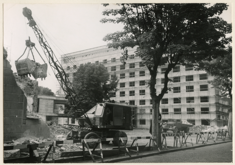 Abbruch der Kaserne, dahinter Regierungs-Neubau, 1959, Foto: anonym, LLB: BA DT19-11