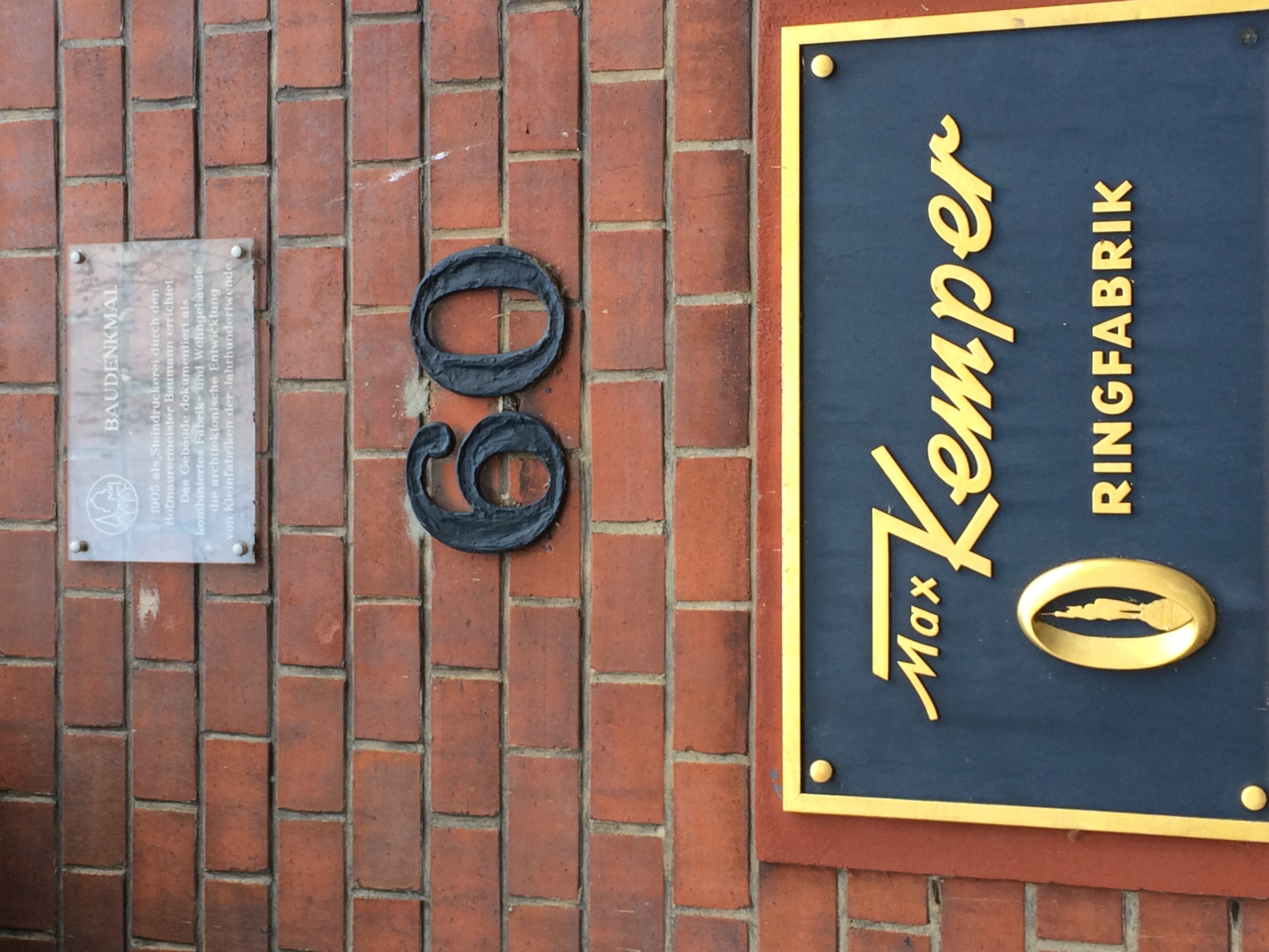 Elisabethstraße 60, Firmenschild der Ringfabrik von Max Kemper, 2017, Foto: Joachim Kleinmanns