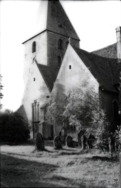 Blic k über den Kirchhof zur Kirche, 1920, Foto: Wilhelm Pecher (LLB: BA SP-DT-Hgk-31016)