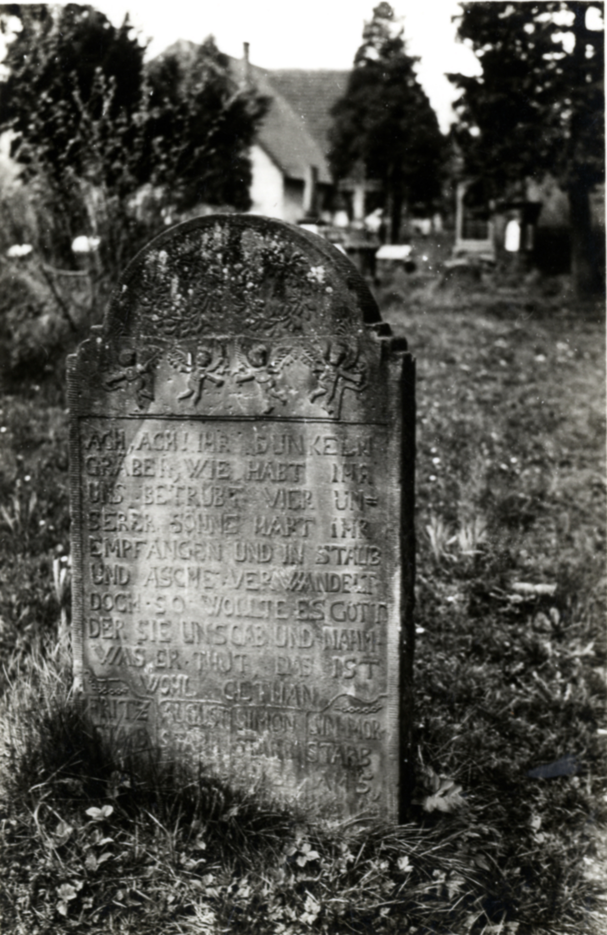 Grabstein für die Kinder von Heinrich Beins und Karoline Broder aus Hornoldendorf, 1920, Foto: Wilhelm Pecher (LLB: BA SP-DT-Hgk-67)