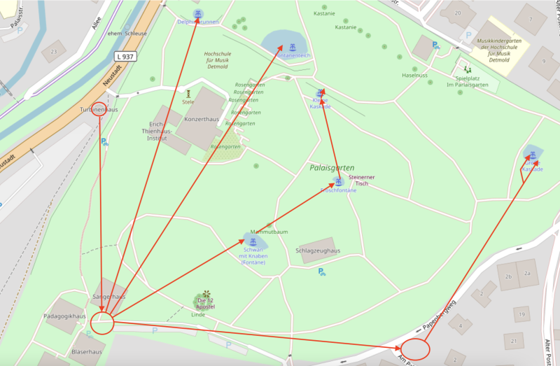 Schema der Wasserspiele im Palaisgarten, 2022, Joachim Kleinmanns