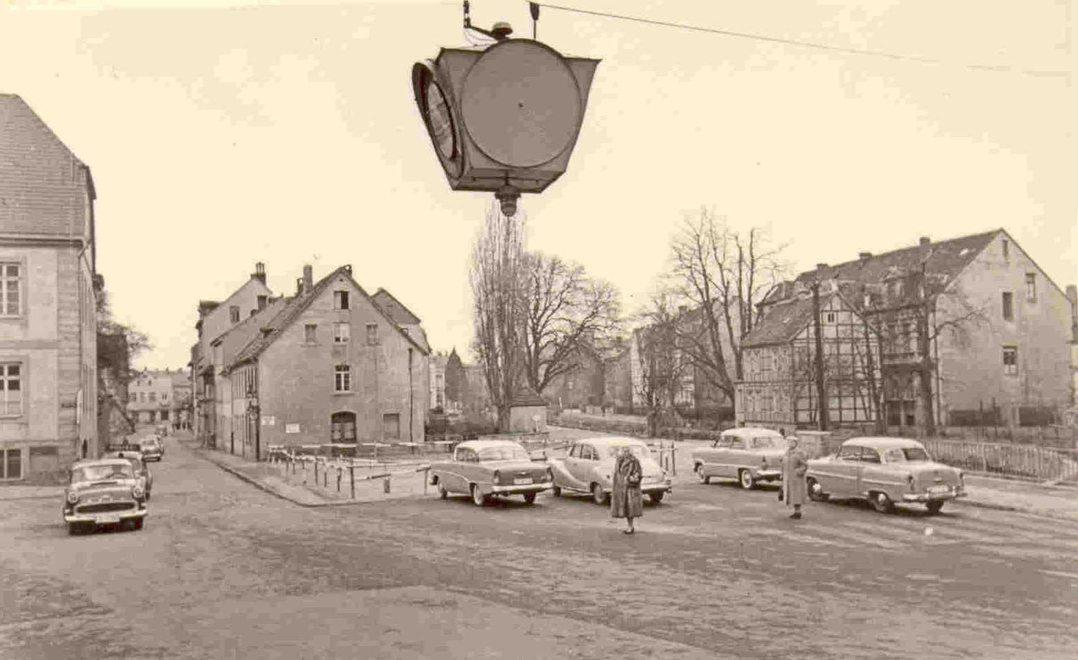 Für die Verbreiterung der Weinbergstraße abgeräumte Fläche der ehem. Häuser Weinbergstraße 1-3 und Wall 14-16, Blick vom Lippischen Hof nach Westen, 1958, StadtA DT: BA 1777