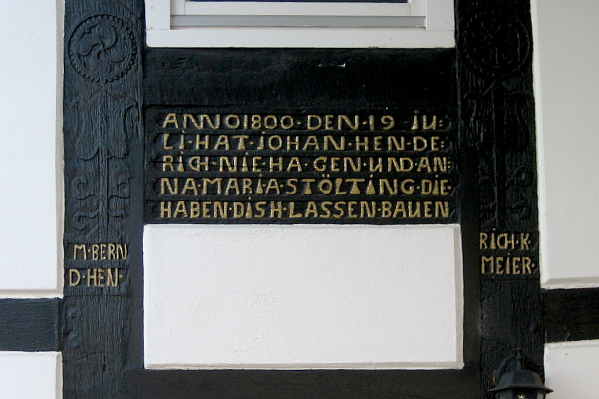 | aktuell | 22:34, 22. Jul. 2025 | 1.171 × 780 (170 KB) | Hans-Christian Schall (Diskussion | Beiträge) | Hausinschrift über Seitentür Kachtenhausen ehem. Nr. 13, Foto: Herbert Penke, 2008 |