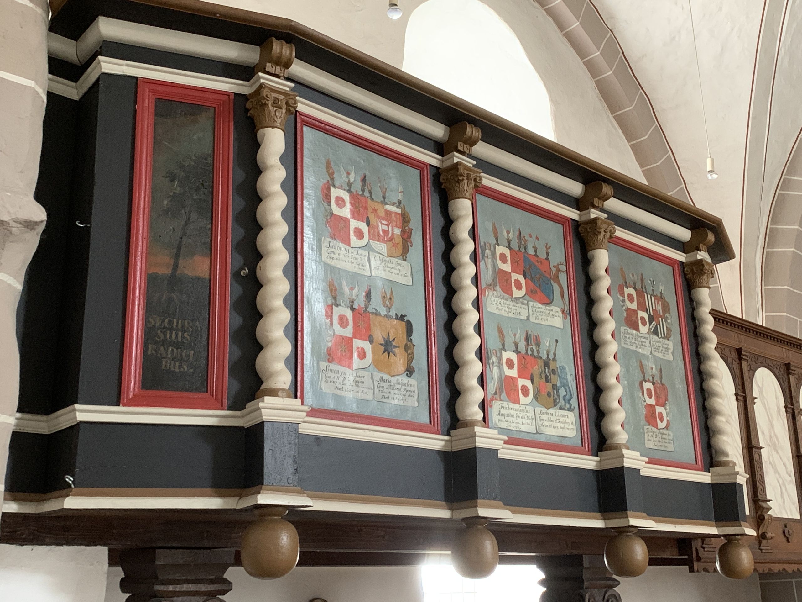 Ev.-ref. Kirche, Grafenempore mit Stammbaum-Malerei, 2021, Foto: Joachim Kleinmanns