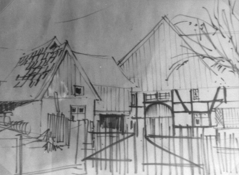 Bleistiftskizze der alten Stätte, unbekannter Zeichner, Sammlung H. Potthast.