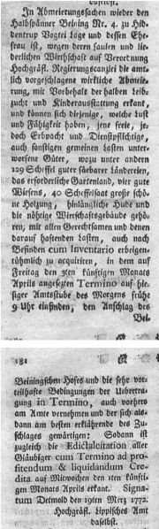 LLB, Lipp. Intelligenzblätter 1772, Nr. 12, S. 180/181