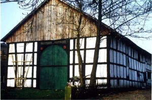 Der Torbalken befindet sich auf dem Hof Hinke.