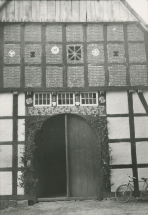 Über der Haustür an der westlichen Traufseite der Bibelspruch Psalm 42 Vers 6: WAS BETRÜBEST DU DICH, MEINE SEELE, UND BIST SO UNRUHIG IN MIR ? HARRE AUF GOTT; DENN ICH WERDE IHM NOCH DANKEN, DAß ER MIR HILFT MIT SEINEM ANGESICHT.[11]
