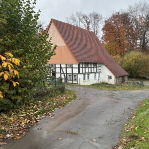 "Dieses stattliche Fachwerkbauernhaus wurde als Vierständerbau 1681 errichtet und besteht aus 7 Gebinden (6 Fach). Das Satteldach ist heut mit roten Betondachsteinen eingedeckt. An der östlichen Traufseite ist eine kurze Abseite aus Bruchstein mit tiefgezogenem Dach später angebaut worden. Die Südseite der Abseite ist heute verputzt. Die Fachwerkaußenwände sind dreifach verriegelt und werden an den Giebelseiten durch gegenläufige Schwelle-Ständer-Streben ausgesteift. An der Torgiebelseite links vom Tor fehlt eine Strebe. Die Erdgeschosswand unterhalb der mittleren Riegelkette an der östlichen Traufseite links neben der Kübbung wurde komplett massiv erneuert und verputzt. Die beiden verbretterten Giebeldreiecke kragen über profilierte Stichköpfe vor und wurden in jüngerer Zeit durch schmalere Bretter mit Deckleisten auf den Stößen erneuert. Den Sturzriegel der Toranlage ziert eine fünfzeilige Inschrift in Flachschnitttechnik: WER GOT VERTRAUWET DER HAT WOL GEBAUWET IM HIMMEL UND AUF ER/DEN WER SICH VERLEST AUF JESUM CHRIST DEN MUS DER HIMMEL WERDEN / GOTSCHALCK KIRCHHOF UND KATRINA KRISTSTINA GORGENS DIE HBEN /DIESES HAUS BAUEN LASEN IM JAR CHRISTI ANNO 16LXXXI / UND MEIN FETTER MEISTER PLASHANS HAT DIS HAUS BAUWET Die Torständer sind mit floralen Motiven beschnitzt. An der Wohngiebelseite des Hauses ist rechts neben dem Eingang eine geschnitzte Inschrift zu lesen: SIRACH: 37 CAPITEL V.20./ EHE DU WAS ANFAHEST SO/ FRAGE VOR UND EHE DU WA/ WAS THUST NIMM RATH DAZU. Zwischen den Textblöcken befindet sich ein stilisierter Baum des Lebens.