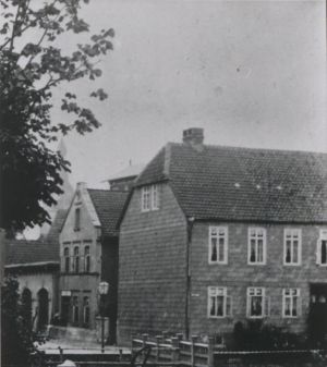 1925 (Adressbuch) Rudolf Starke, Kolonialwaren und Feinkost; Lina Starke, Putzgeschäft; Heinrich Bahlmann, Schneidermeister; Marie Vaupel, Witwe.