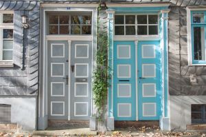 Friedrichstraße 5/7, Haustüren, Ansicht von Osten, 2022, Foto: Joachim Kleinmanns