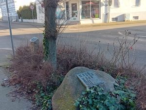Zwölf Granitstelen sind an Straßen in der Kernstadt aufgestellt. Sie erinnern an Wohnorte ehemaliger jüdischer Bürger.