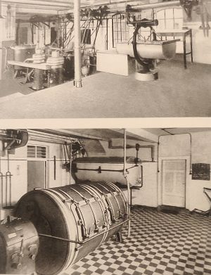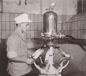 Molkerei Wellentrup, Betriebsräume und Buttertrommel (unten). Foto von 1938