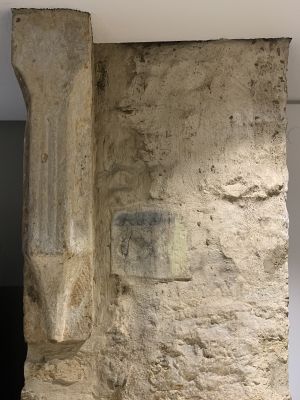 Auf dem unteren Schwellbalken: "NISI DOMINUS AEDIFICAVERIT DOMUM FRUSTA LABORAVERINT QUI AEDIFICANT EAM. PSALM 127. Videte ait, quid faciatis, non enim hominis sed exercetis iudicium Domini ETC. 2. PARA 19" (Wenn der Herr nicht das Haus baut, arbeiten vergeblich, die daran bauen. Psalm 127: Ihr haltet nämlich nicht das Gericht im Namen der Menschen, sondern im Namen des Herrn).