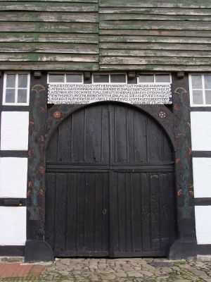 des Torbogens des abgebrochenen Vorgängergebäudes in einer Innenwand wieder neu verzimmert. (Fehlende Textstücke ergänzt):