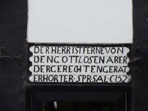 Inschrift über dem Seiteneingang der Leibzucht, Foto; Hans-Christian Schall, 2009