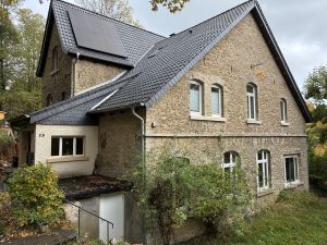 1 ½-geschossiger giebelständiger Bruchsteinbau mit Satteldach, Gurtgesims zwischen Erdgeschoss und Kniestock, Fenster mit Stichbögen überwölbt. Rückseitig gering höherer Querbau, ebenfalls mit Satteldach und sekundärer Eingangsvorbau an der Westseite. Befensterung des Straßengiebels verändert, im Erdgeschoss rechts das Fenster verbreitert und mit geradem Sturz (Doppel-T-Träger) geschlossen, im Kniestock das linke Fenster zu einem Zwillingsfenster erweitert.