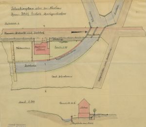 LAV NRW OWL, L 91 A / Kreisverwaltungsgericht Detmold, Nr. 96: Kläger: Eubell, W.; Beklagter: Verwaltungsamt in Detmold: Schankkonzession, 1906-1907, enthält u. a.: Lageplan der Gemeinde Heiligenkirchen von dem Grundstück des Kaufmanns Eubell und Umgebung; Grundrisszeichnung von Häusern in Heiligenkirchen, 1906.