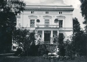 1872/73 am Fuße des Weinbergs weit hinter der Fluchtlinie der in Bebauung stehenden Palaisstraße im Auftrag des Major a.D. Heinrich Schmidt, Strafanstaltsdirektor, von Maurermeister Friedrich Baumann sen. errichtete, zweieinhalbgeschossige, neoklassizistische Familienvilla mit Säulenportikus unter balustradeumfasstem Flachdach. Nach Ergänzungsbauten (Bedienstetenhaus, Reitstall, Remise) 1923 Erweiterung des rückwärtigen Gebäudeteils um Musiksaal (im EG) und Bibliothek (im OG). 1958 ff Überbauung unter Erweiterung und Aufstockung sowie Erhaltung weniger älterer Gebäudeteile, die heute teils unter Denkmalschutz gestellt sind.