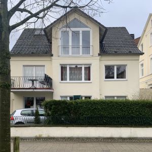 Traufständiger zweigeschossiger massiver Putzbau, Satteldach, mittiges Zwerchhaus, Fensteröffnungen und Verschlüsse verändert.