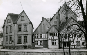 Abbruch der Häuser Wall 14–16 und Weinbergstraße 1–3, Januar 1958, Foto: Fritz Ostmann, LLB: BA DT-10-53A